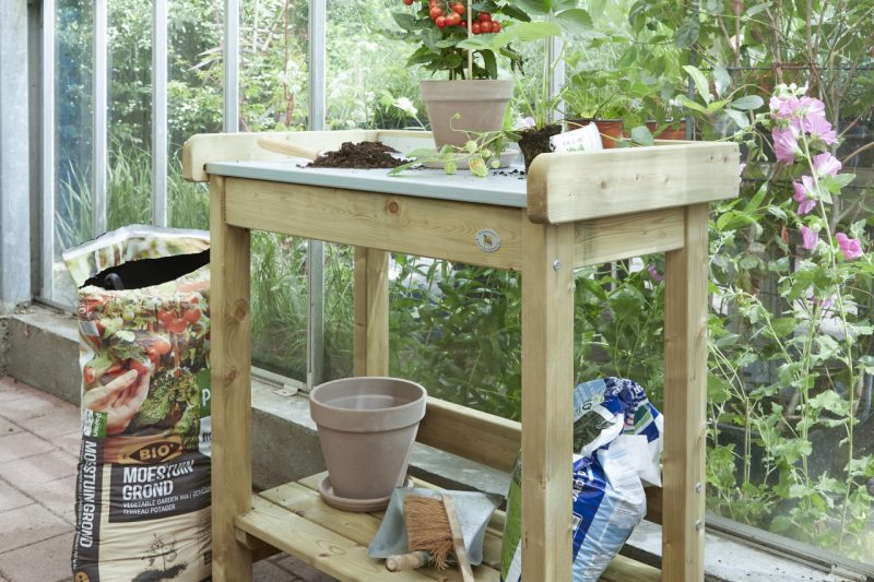 Cette table de rempotage, fabriquée en bois résineux d'Europe du Nord avec le label de qualité FSC®, est traitée sous pression et approuvée par KOMO pour chaque composant. Grâce à sa construction robuste avec des assemblages à tenons et mortaises, cette table de rempotage est très solide et durera des années. Le plan de travail galvanisé offre durabilité et fonctionnalité, tandis que le plateau pratique est suffisamment solide pour accueillir des seaux ou du terreau. La table de rempotage est stable et ne présente pas d'échardes. Ses dimensions sont généreuses : 92x50x96 cm (LxLxH). L'installation est facile car les côtés, le dessus et le plateau sont déjà pré-assemblés.