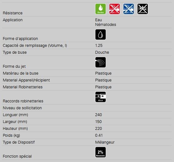 Application de nématodes selon dosage précis. Le système de dosage bien conçu donne un mélange exacte d'eau et nématodes.