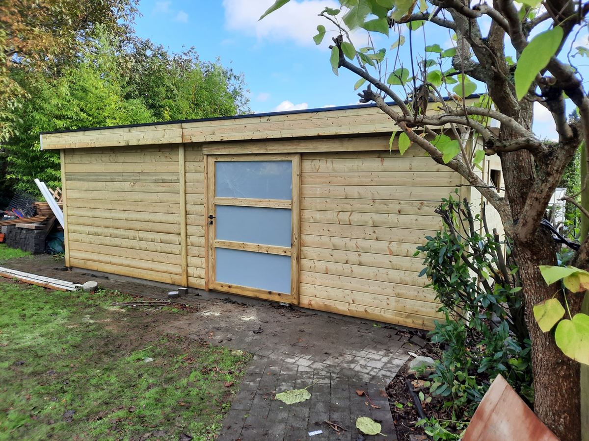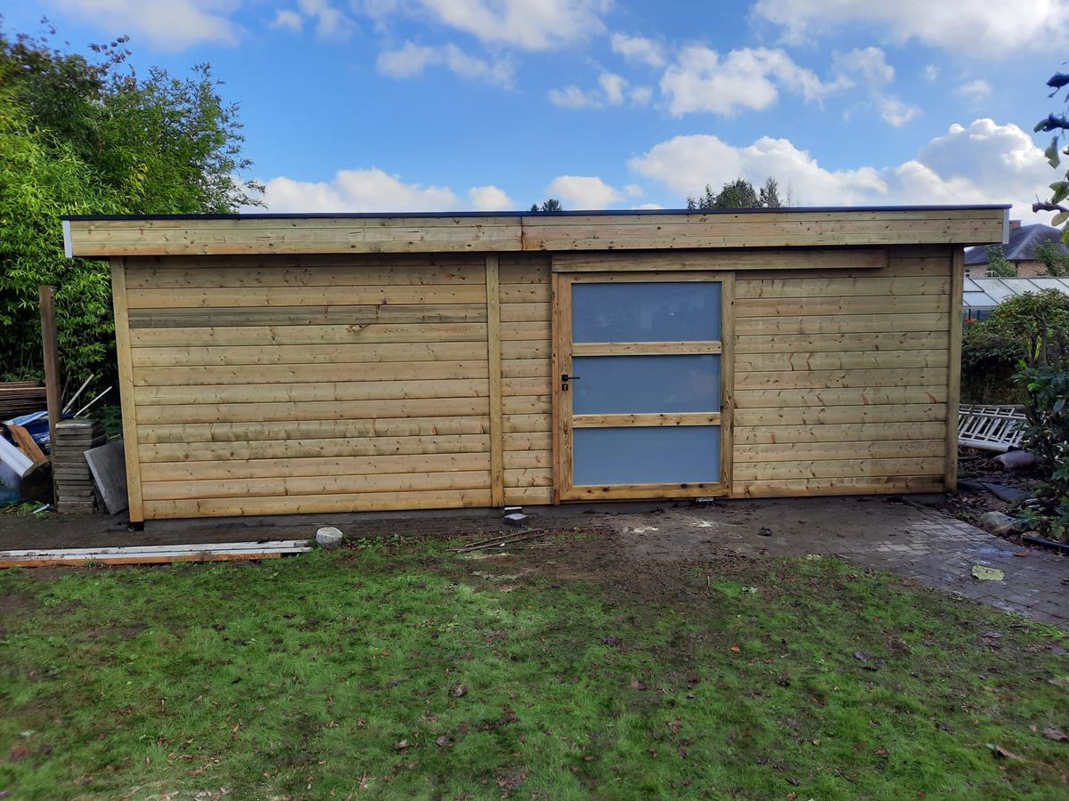 Abri de jardin moderne en bois imprégné, couleur Salt Green. Équipé d’une porte coulissante pratique, offrant gain de place et facilité d’utilisation. Résistant aux intempéries et facile d’entretien.