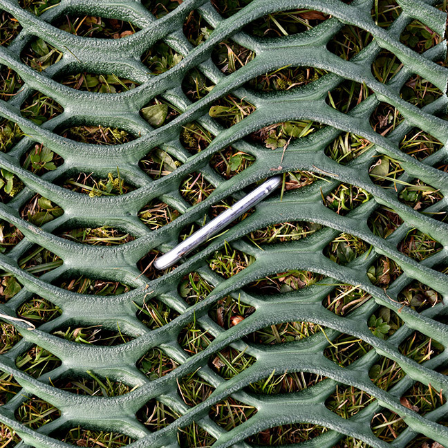 Berijdbaar bewapenings- en verstevigingsnet, om tuin- en groenvlaktes te stabiliseren, ter bescherming tegen slijtage.
