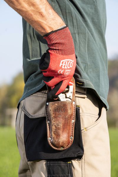 Bevestig deze holster van echt leer aan uw riem en u zult zich afvragen hoe u het ooit zonder hebt gered. De FELCO 910 is perfect om uw snoeischaar bij de hand te houden voor snoeiwerk op elk moment, waar u ook bent. Gelukkig hoeft u uw schaar niet meer in uw jas- of broekzakken te proppen, of in de bovenkant van uw riem. Of hij nu is bevestigd met de riemlus of de clip, deze robuuste holster beschermt u en uw gewaardeerde FELCO-gereedschap.