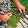 De RVS egaliseerhark nivelleert grond en gras beter en sneller dan een standaard tuinhark, zodat men het gazon vlak en mooi kan houden.