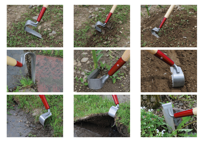 ·Met de U-schoffelhak kun je voren trekken om zaaigoed te planten en achteraf weer dicht te maken