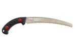 Bij het werk boven schouderhoogte en onder kniehoogte kun je met het gebogen blad boven op de tak blijven zagen, terwijl je arm, pols en hand in de natuurlijke positie blijven. Hierdoor werk je efficiënt, zelfs in de meest moeilijke omstandigheden. Door de neus aan het uiteinde van het blad houd je de zaag makkelijk in de zaagsnede en beter onder controle. Het zaagblad loopt door in de handgreep waardoor deze stabiele zaag perfect is uitgebalanceerd. De uit rubber gegoten handgreep ligt comfortabel in de hand en absorbeert de trillingen.