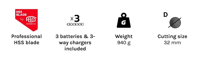 De elektrische snoeischaar Wildhorn 32 combineert Zwitsers vakmanschap met de beste technologische expertise ter wereld. Deze snoeischaar is ontworpen voor veeleisende professionals en particulieren en garandeert u een ongeëvenaarde snoeiervaring. Laat u verrassen door de kwaliteit van het HSS-mes, vervaardigd door onze partner Felco ©, dat u efficiëntie en duurzaamheid garandeert.