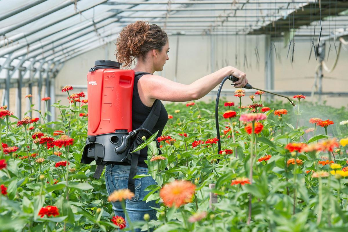 Drukgestuurde accu rugsproeier met CAS systeem.