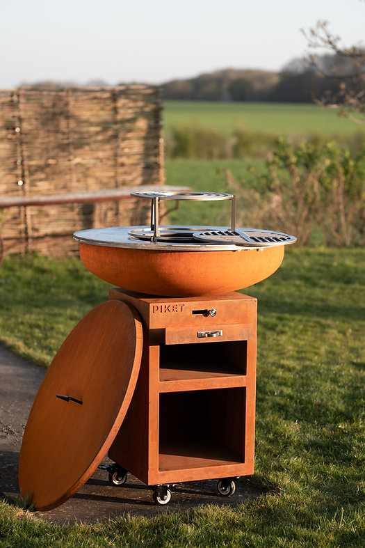 Dit is een (verrijdbare) outdoor plancha bbq, uitgevoerd in cortenstaal en met een diepe basis. Deze bbq is geschikt voor gebruik op geplaveide oppervlakken. Onder het werkblad is een opslagruimte voor hout. De hitte straalt vanuit het midden uit naar buiten waardoor je op het kookoppervlak (plancha) verschillende temperaturen hebt en dus allerlei bereidingswijzen kan toepassen. Zoals bij al onze bbq's is ook deze bbq inclusief een recum accessoires.